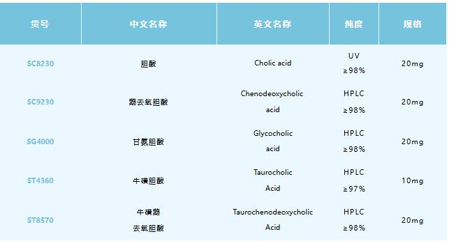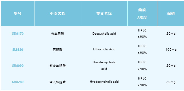 更多相關(guān)膽汁酸標(biāo)準(zhǔn)品推薦